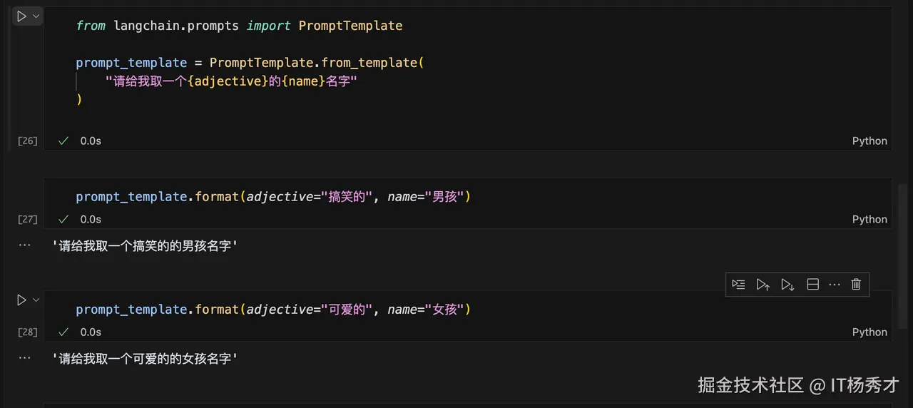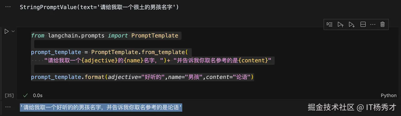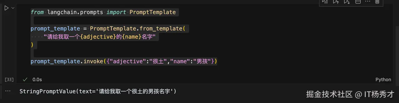 PromptTemplate主要用于创建一个字符串prompt,其实它就是相当于的Python str.format ,用来格式化我们的输入。它支持任意数量的变量,也可以没有没有变量