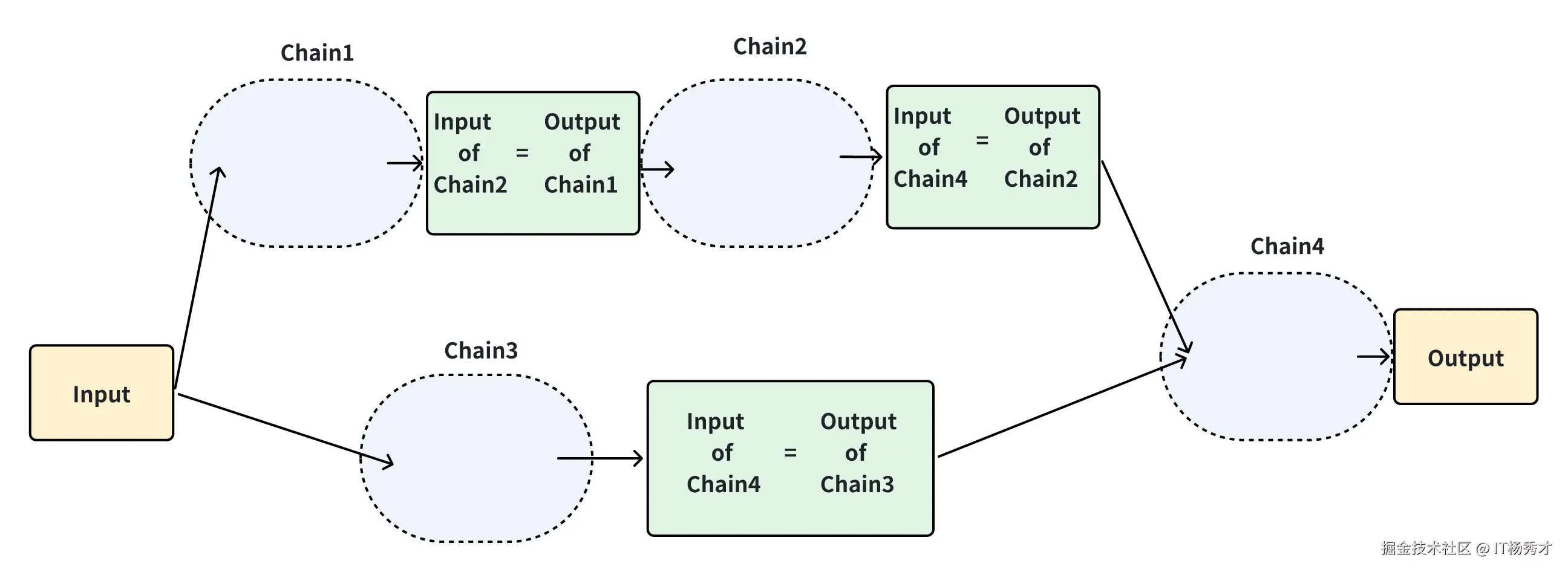 SimpleSequentialChain的每个步骤是串联起来的,每个步骤都有单一的输入/输出,并且一个步骤的输入是下一个步骤的输出。