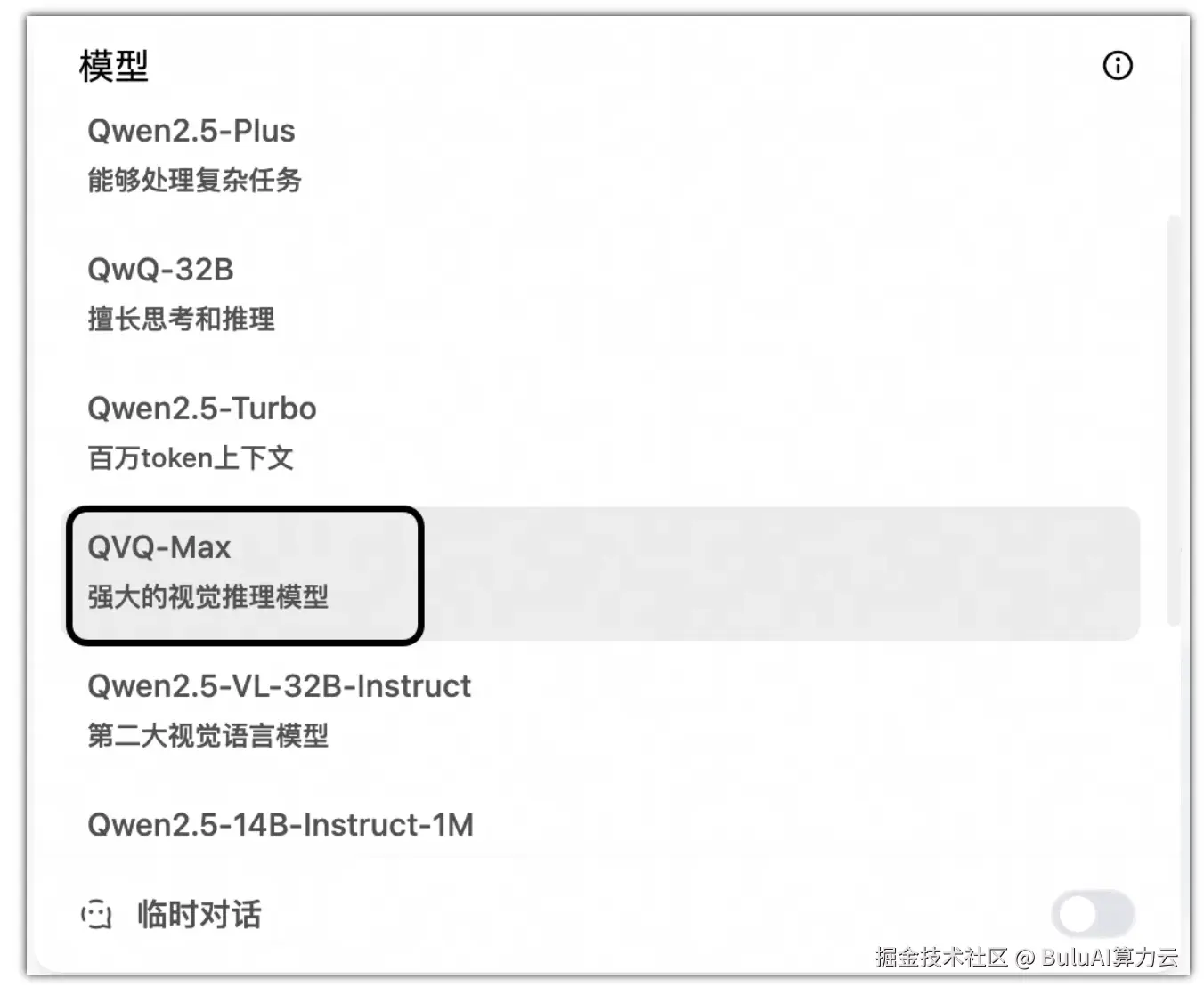 目前,QVQ-Max 已经在 QwenChat 平台上线,用户可以轻松访问并体验其强大的功能。无论是上传数学题照片获取分步解析,还是输入产品设计草图生成多方案建议,亦或是分析监控视频输出异常事件报告,QVQ-Max 都能够快速给出准确的结果。通过 QwenChat 平台,用户可以直观地感受到 QVQ-Max 带来的便利与高效,开启属于自己的智能之旅。