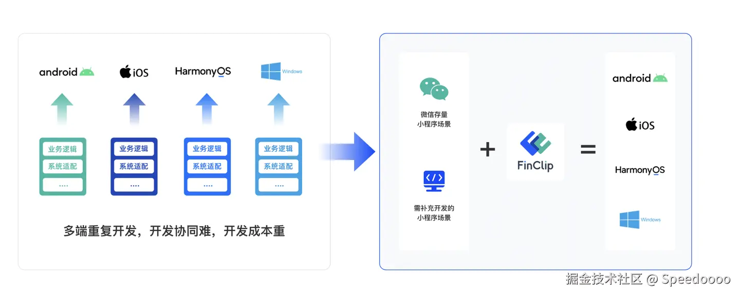 小程序技术或者HTML5技术天然的跨端,以及受益于微信小程序生态近几年来的蓬勃发展,小程序应用场景复用且通过“小程序转换工具”(小程序容器技术,如FinClip;或跨端框架,如Flutter、Weex等),将已有微信小程序一键转换成App,并进行用户活跃和留存,加上社交平台应用作为引流,企业可谓低成本(只需有小程序)的将业务覆盖用户整个生命周期,具了解,凡是小程序容器技术,都有将自己SDK适配鸿蒙操作系统的计划(或者说已经适配了)。