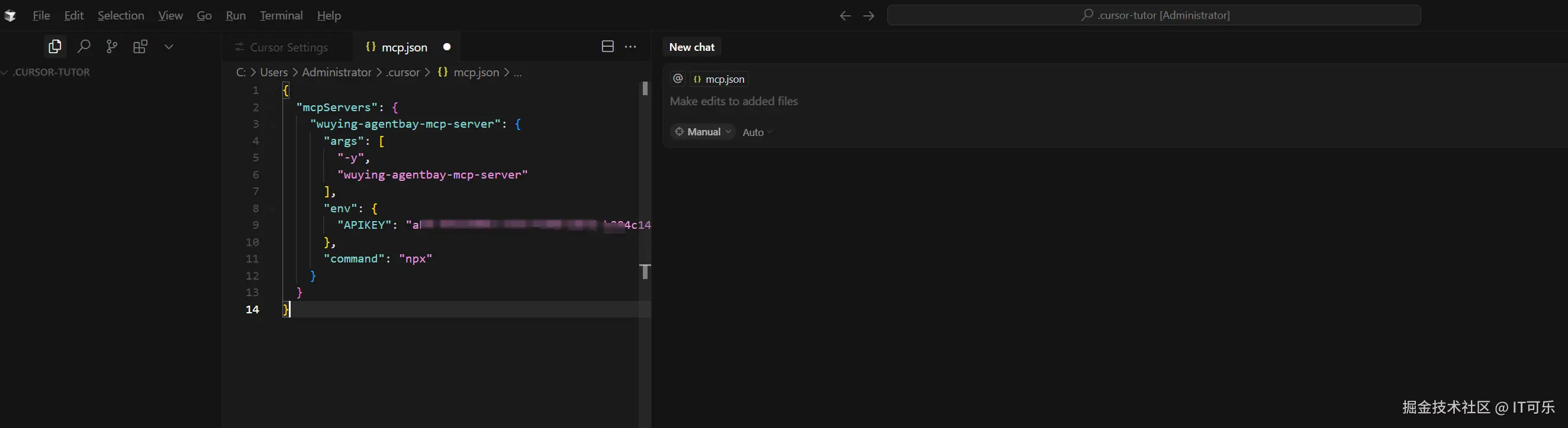 第三步:在打开的mcp.json文件中粘贴以下代码,并保存文件。当前支持的安装方式包括STDIO和SSE。