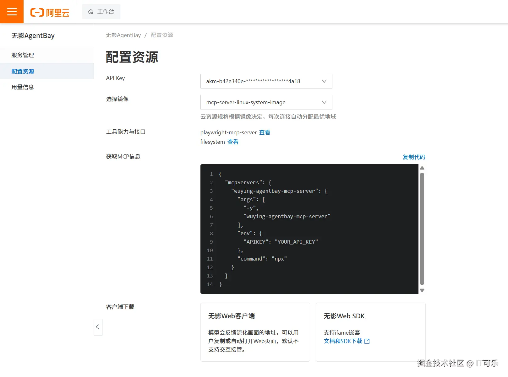 最后在获取MCP信息文本框右上角单击复制代码,并在支持MCP的工具(例如Cline、Cursor等)中添加上述代码。