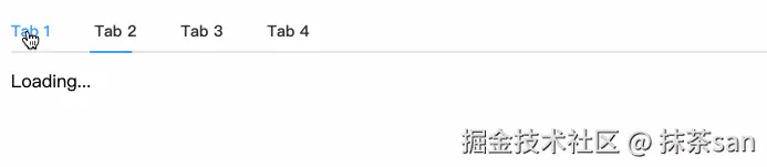 在点击 tab 时实时请求数据,使用 setTimeout 来模拟异步请求,每个 tab 的延迟时间设置为100ms、1000ms、500ms、2000ms,这样可以更好的理解延迟高的数据覆盖延迟低的数据的场景,妥妥的“后来居上”。