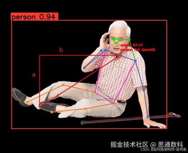 - 基于思通数科优化的人体姿态识别算法(结合YOLOv9与OpenPose),通过摄像头捕捉人体关键点,判断“躺倒”或“跌倒”状态,识别率达98%。
