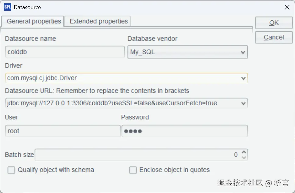 然后启动 esProc IDE,菜单栏选择 Tool-Connect to Data Source,配置 MySQL 标准 JDBC 连接。