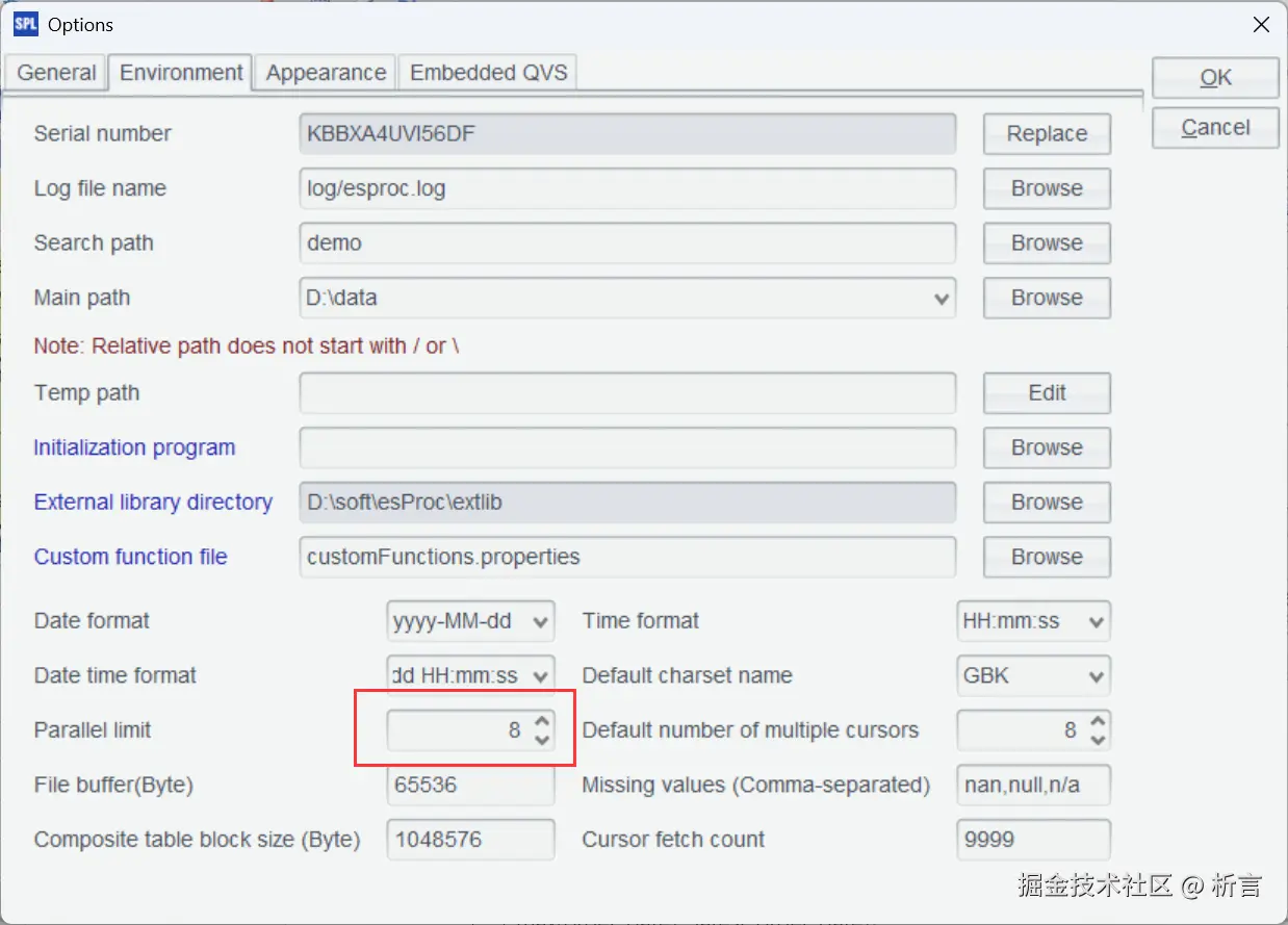 esProc 还能方便地写出并行代码,btx 和 ctx 都可以,只要配置一下并行数,跟 CPU 核数一致就可以(这里配置了 8 个)。