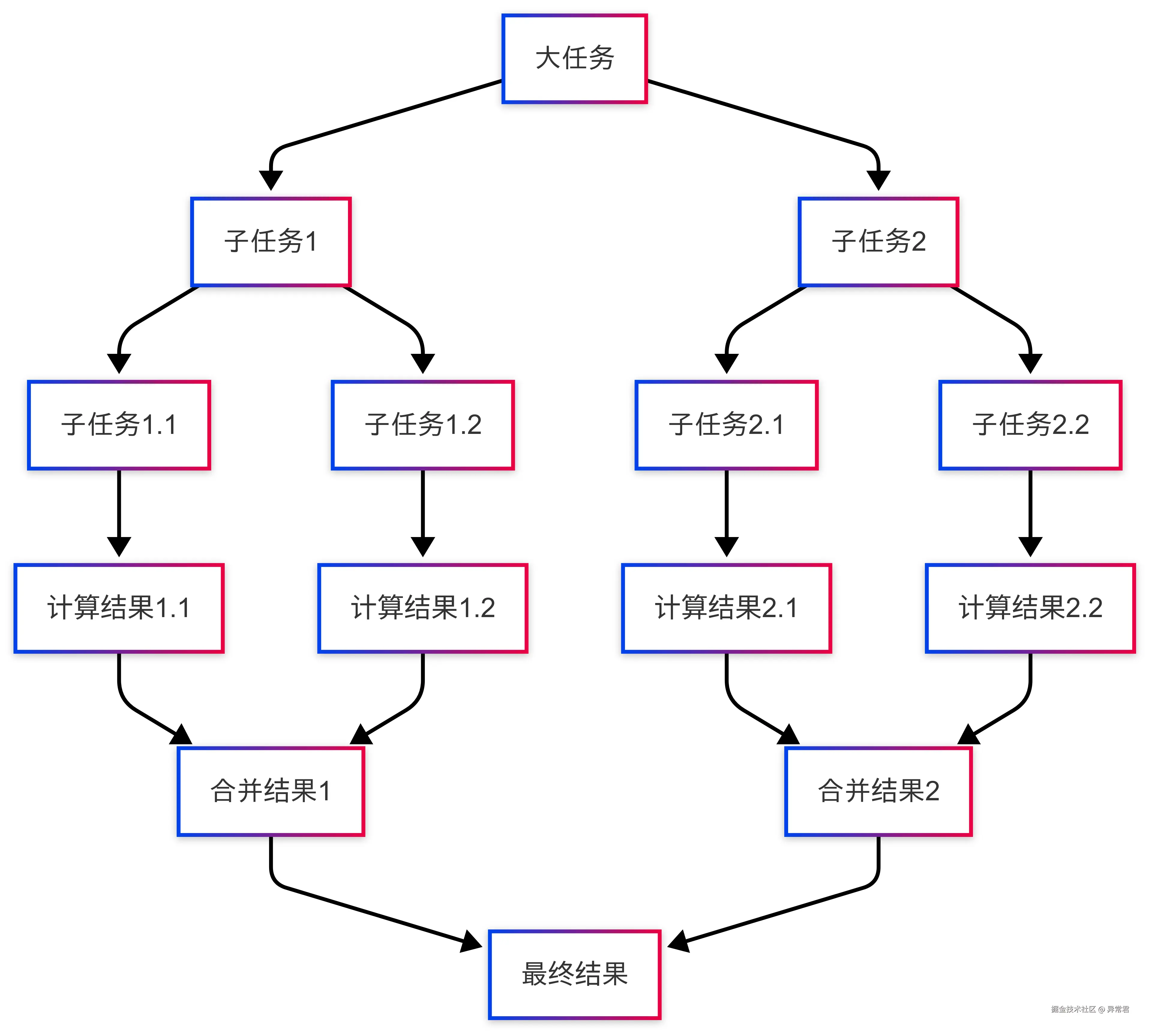 | 核心思想 | 分治 + 工作窃取 |