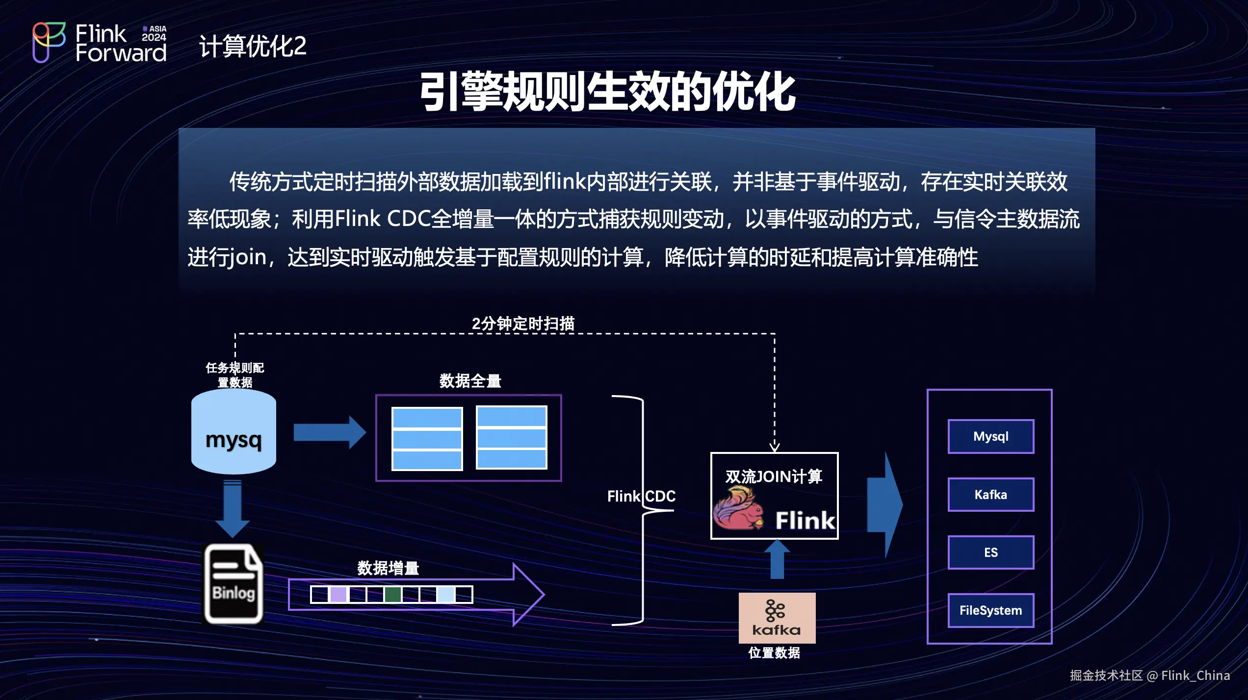 利用 Flink CDC 驱动双流 Join 技术,实现规则变更的实时生效。当规则发生变化时,系统能够快速将新规则应用到数据流中,确保计算结果的准确性和及时性。