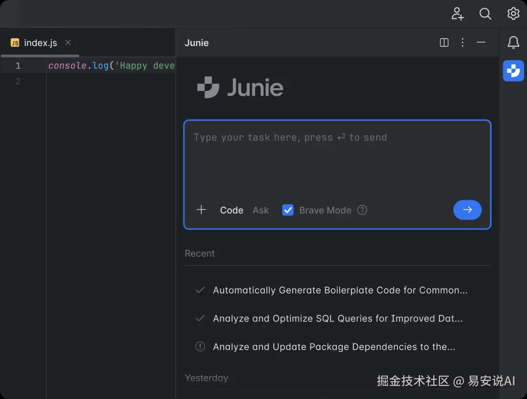 终于不用死守这cursor不放了,Junie与AI Assistant的结合为我们提供了从辅助到自主的全方位AI支持,提供了更多可能,终于不用一边又cursor编码,一边用IDEA调试了,而Java 24全面支持和K2模式的默认启用则进一步巩固了JetBrains在开发工具领域的领先地位。