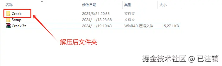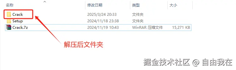 1、在下载目录中找到 Crack.7z 安装程序压缩包,并解压。