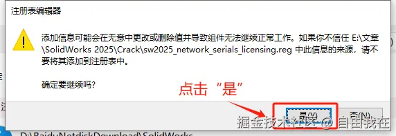 打开解压后的Crack目录,双击运行“sw2025_network_serials_licensing.reg”文件。