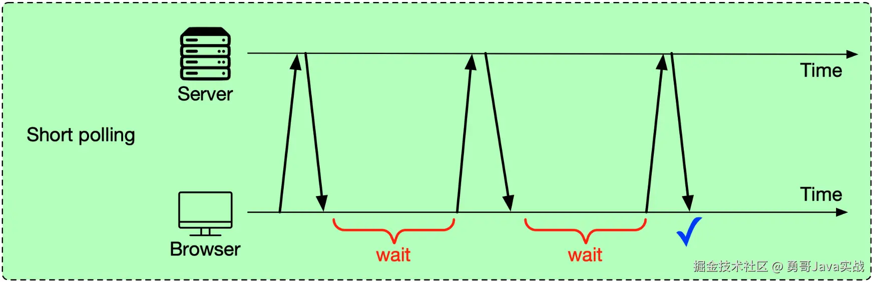 - 缺点:高频请求浪费资源,实时性差(依赖轮询间隔)
