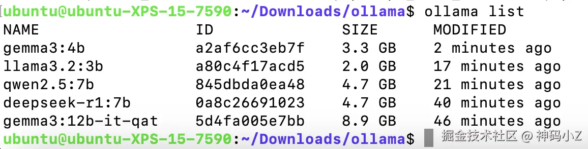 使用以下命令查看已经安装的模型