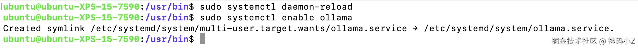 输入以下命令加载ollama.service配置并创建软链接