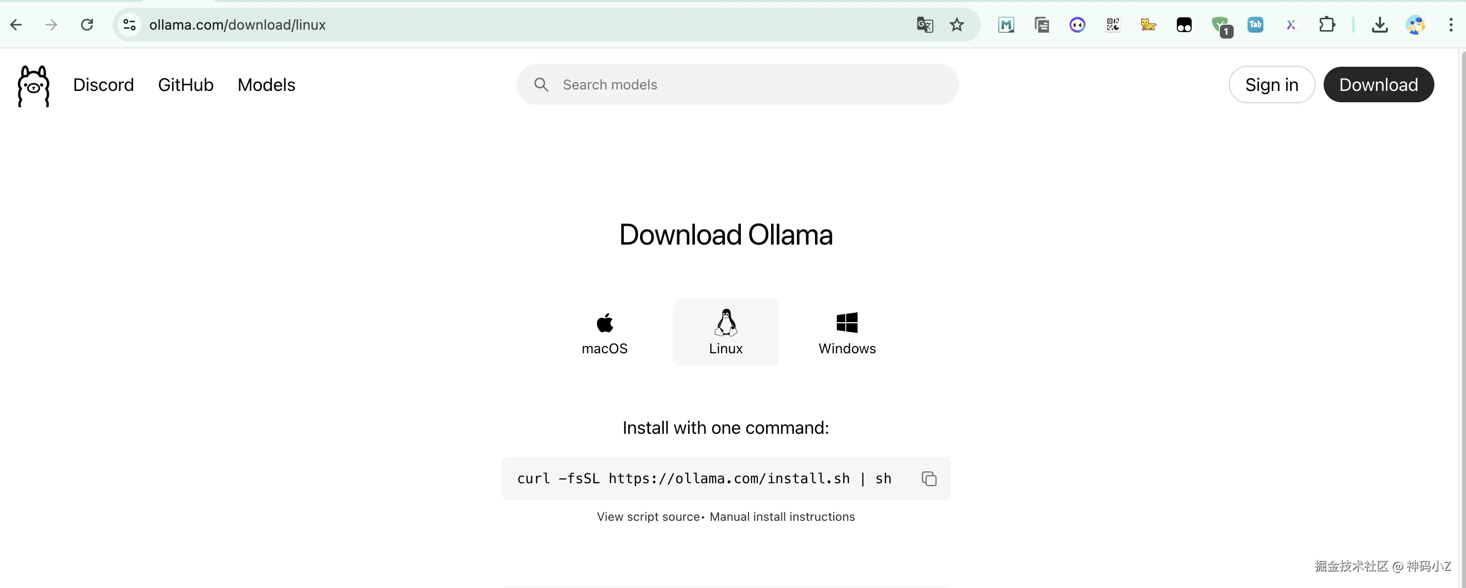 地址:ollama.com/download/,目前macOS和Windows都可直接通过页面下载,Linux需要通过命令下载