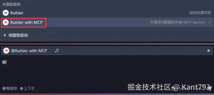 输入@,选择Builder with MCP