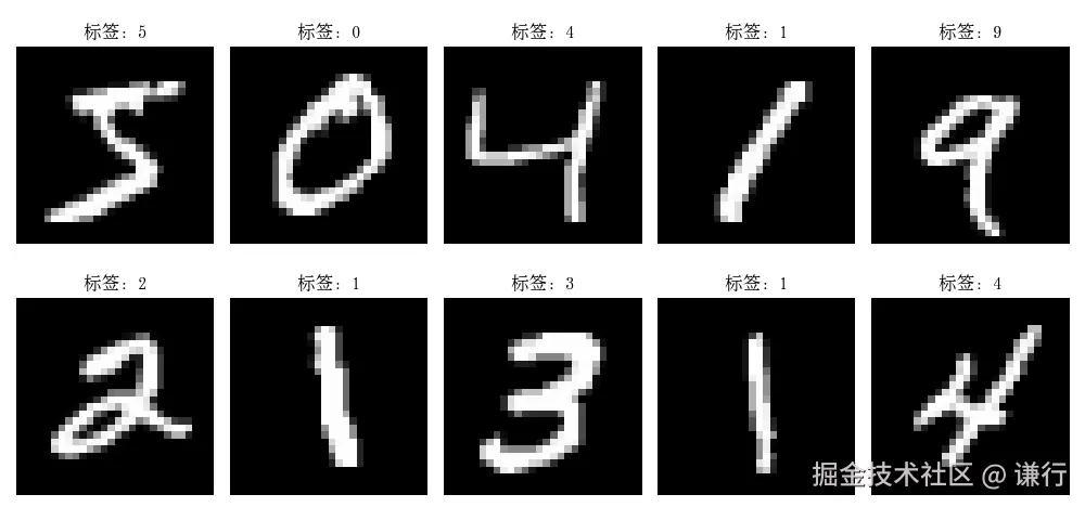 MNIST 是一个经典的手写数字识别数据集,包含了 60000 张训练图片和 10000 张测试图片,每张图片为 28x28 像素的灰度图像,代表数字 0 到 9。