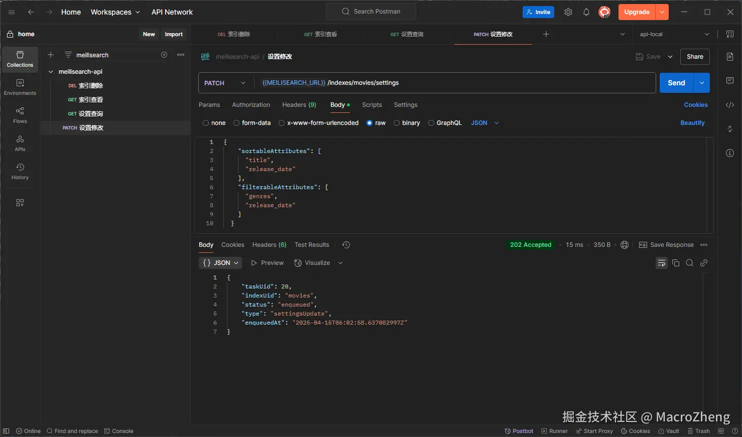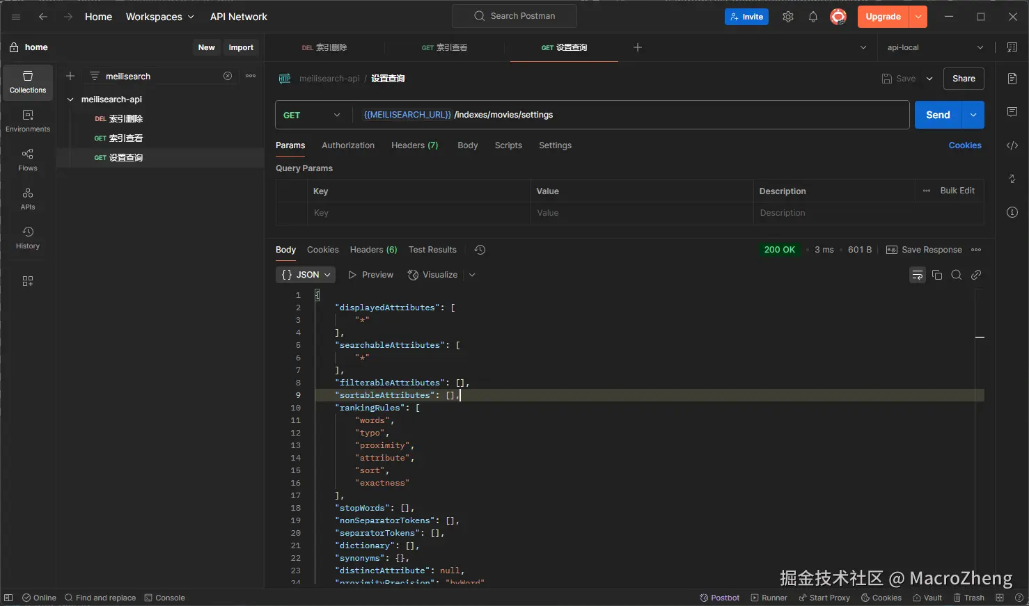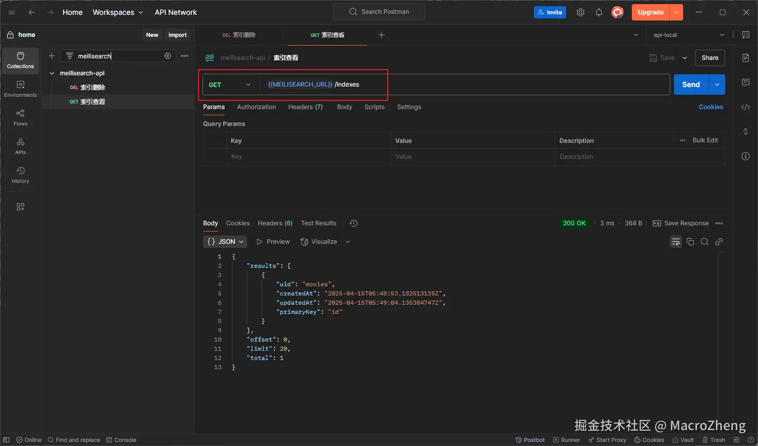 - 如果你想查看Meilisearch中的所有索引,可以使用如下CURL命令;