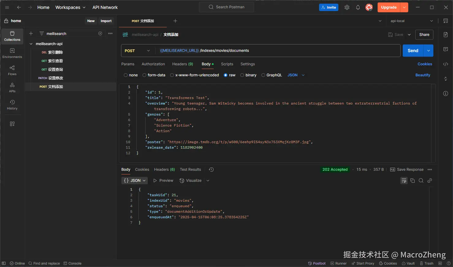 接下来我们就来讲解下Meilisearch的使用,将使用RESTful API的形式。