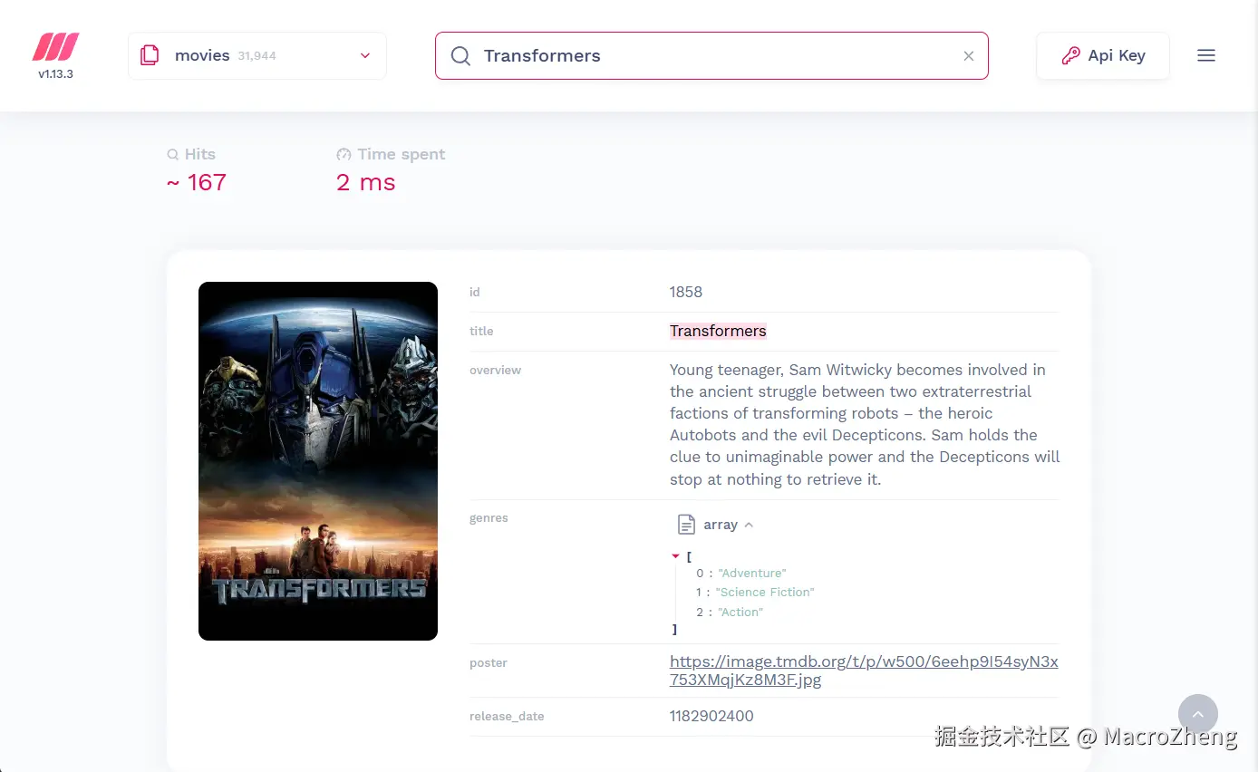 今天带大家体验了一把Meilisearch的搜索功能,对比Elasticsearch,它需要的配置非常低,搜索速度也非常快,感兴趣的小伙伴可以尝试下它!