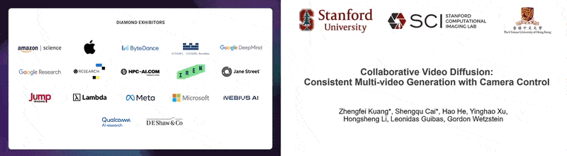 可控性/可编辑性研究: 近期研究致力于提升 AI 3D 生成的可控性,例如通过更精细的条件输入或交互方式。一个例子是 NeurIPS 2024 上的 Collaborative Video Diffusion (CVD),旨在生成多视角一致的视频,这对于可控的 3D 场景生成至关重要。