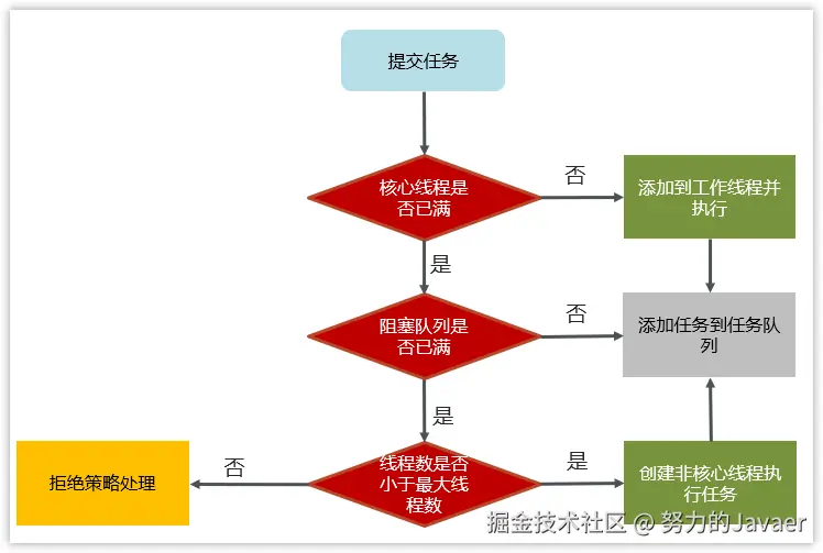 1.任务提交时,先判断核心线程是否已满,没有满则直接添加到工作线程执行