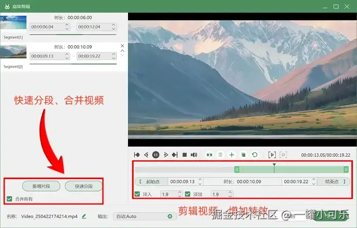 步骤3:录制好了之后,如果你有后期编辑视频的需求,可以不用去找别的后期编辑工具。直接使用数据蛙录屏的 “高级剪辑” 工具,就可以快速分段视频、给视频增加特效等。