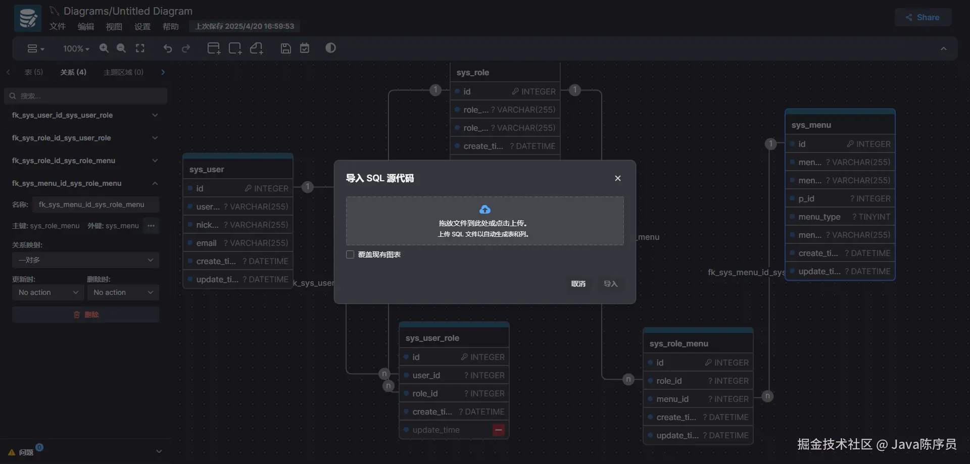 8、反向工程:也支持导入已有的 DDL 脚本快速生成可视图