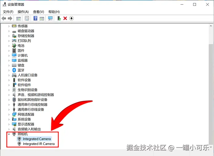 步骤2:在设备管理器中,找到 “照相机” 或 “摄像头” 选项。如果摄像头被禁用了,你会看到摄像头设备名称旁边有一个向下的箭头。这时候,你只需右键单击摄像头设备,选择 “启用设备” 就可以了。