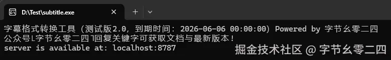 双击 subtitle.exe,此时会自动打开命令行窗口。关闭窗口则程序停止。