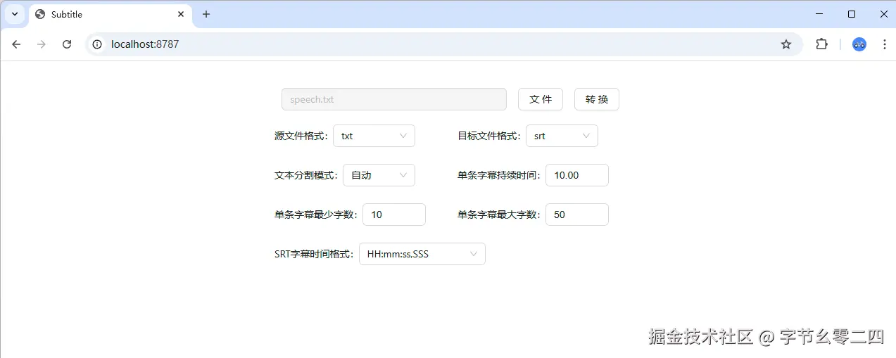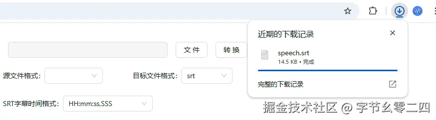 文件选择完毕,参数调整完毕,然后点击转换,浏览器会自动下载转换得到的字幕文件。