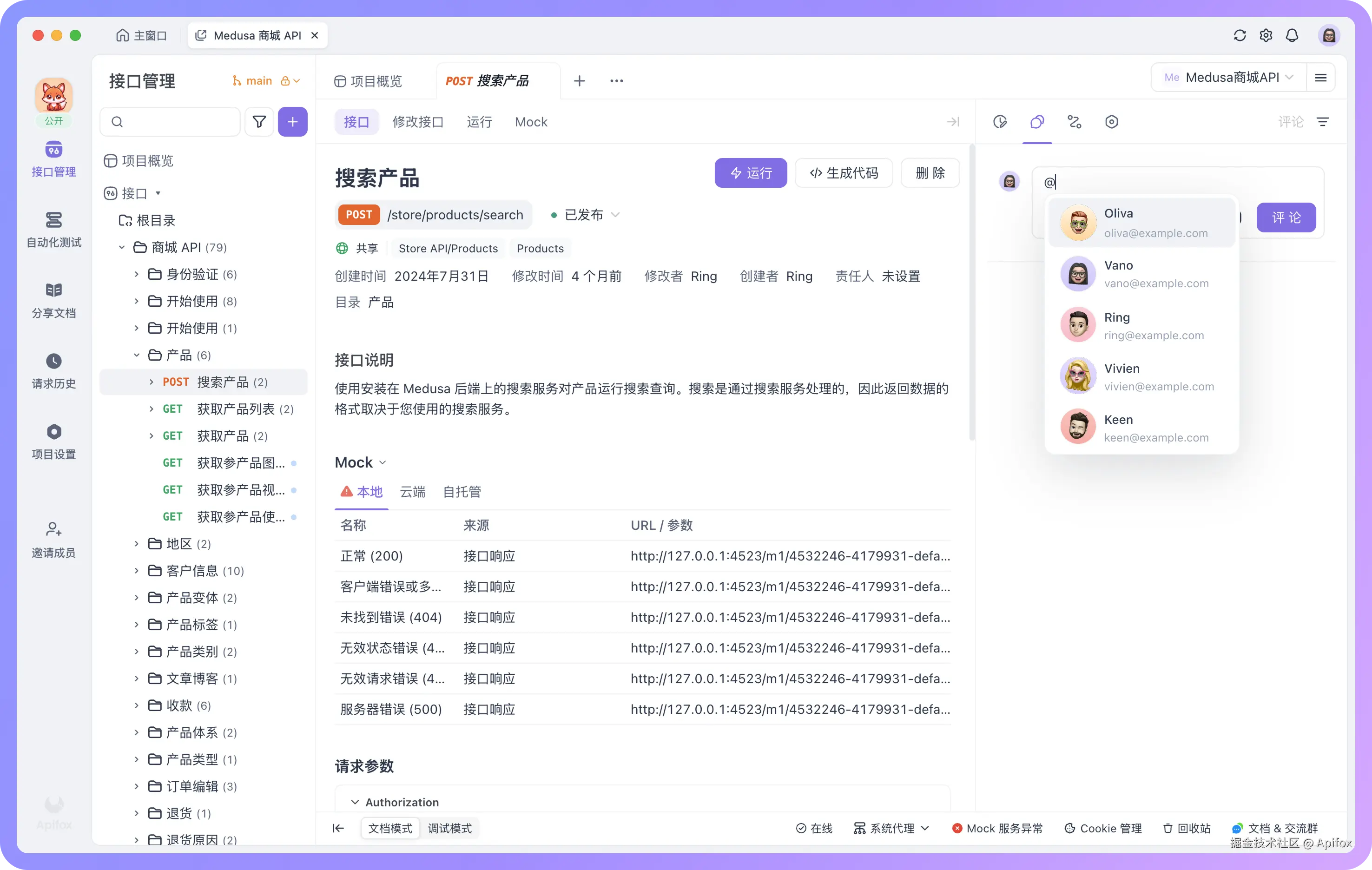 在对接口和测试场景进行评论时,可以使用 @ 提及团队成员,确保重要的讨论和反馈能及时传达给相关人员,让团队协作变得更加高效顺畅。