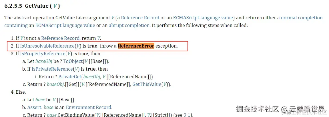 [[getValue]]取值的行为,如果引用不可达,就抛出ReferenceError
