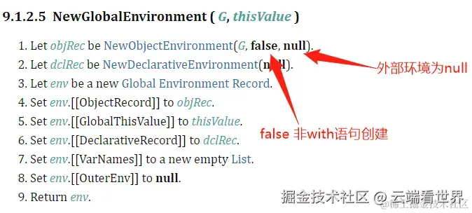- 全局环境记录先找申明环境记录,再找对象环境记录,都没找到, 继续查找上层, 这时候 OuterEnv 已经为空