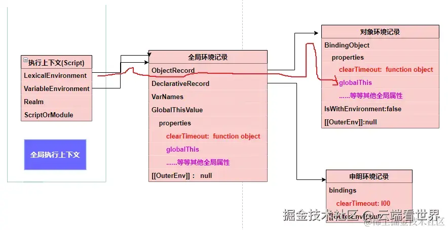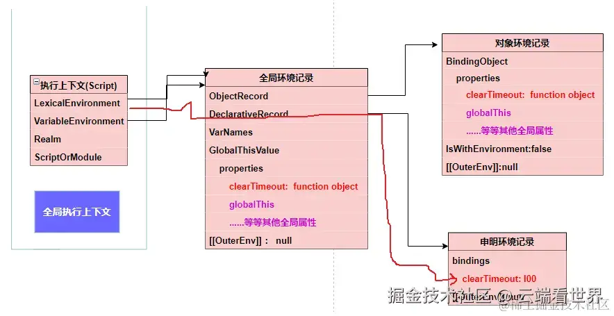 console.log(globalThis.clearTimeout) // 对象环境记录 ƒ clearTimeout() { [native code] }