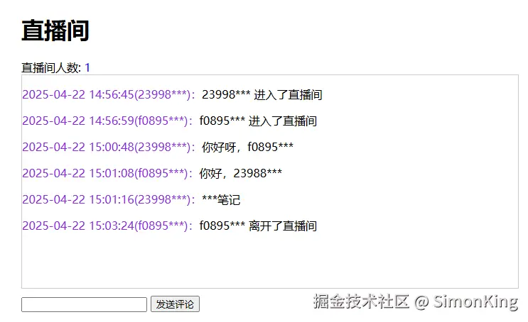 noticeClient(sseEmitterId, sseEmitterId.substring(0, 5) + "*** 进入了直播间");