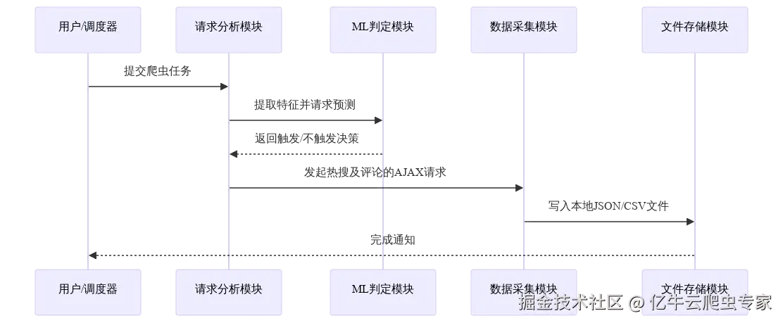 - 功能:根据判定结果发起HTTP请求,具体抓取微博热搜榜单及对应评论。