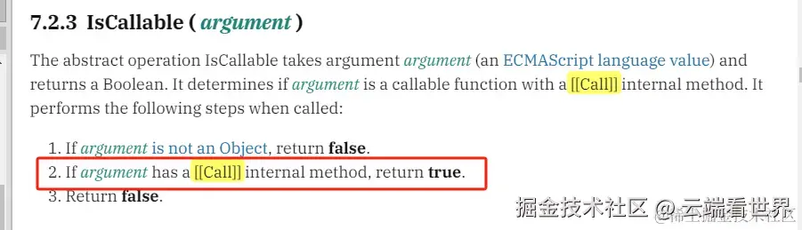 可还记得,是怎么识别或者区分是不是 callable objects的呢? 就是检查有没有 [[Call]]方法,实际调用也会执行这个 [[Call]]方法
