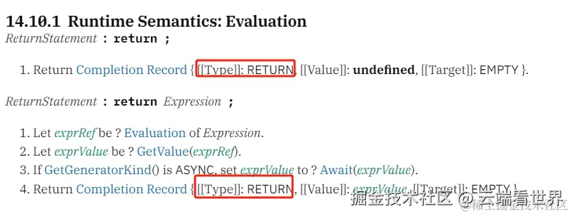 查看 return 语句 ReturnStatement 执行, 其返回的确实是 [[Type]]为 RETURN的完成记录。