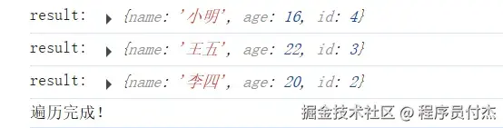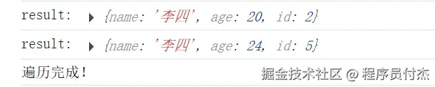 result是个IDBCursorWithValue对象,需调用continue()方法继续取数据。 也可以根据自己需求, 对数据进行过滤。