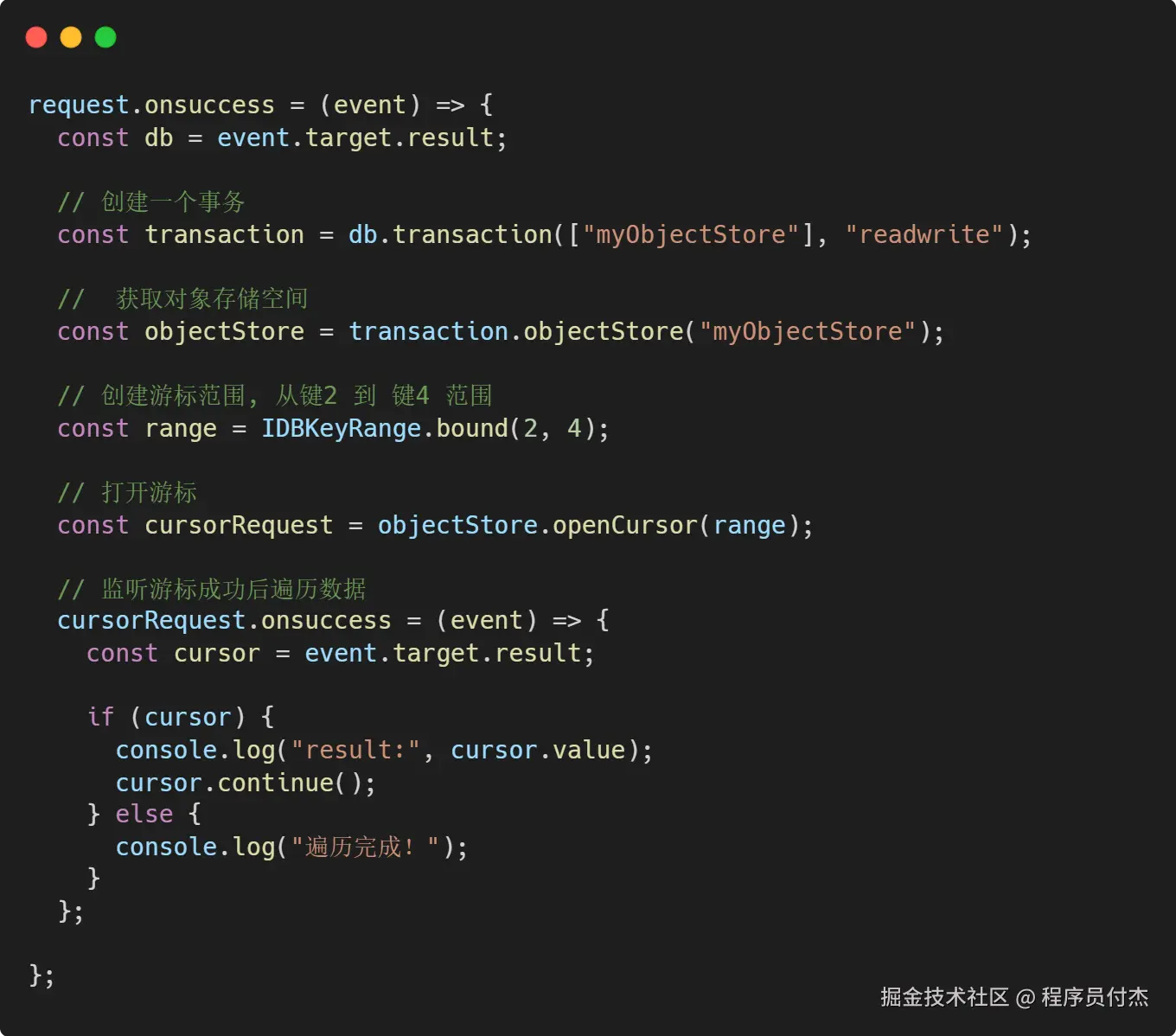以上文章全面介绍了 IndexDB 索引和游标查询。你若觉得某些部分还需调整,或是想补充其他内容,欢迎随时告诉我。