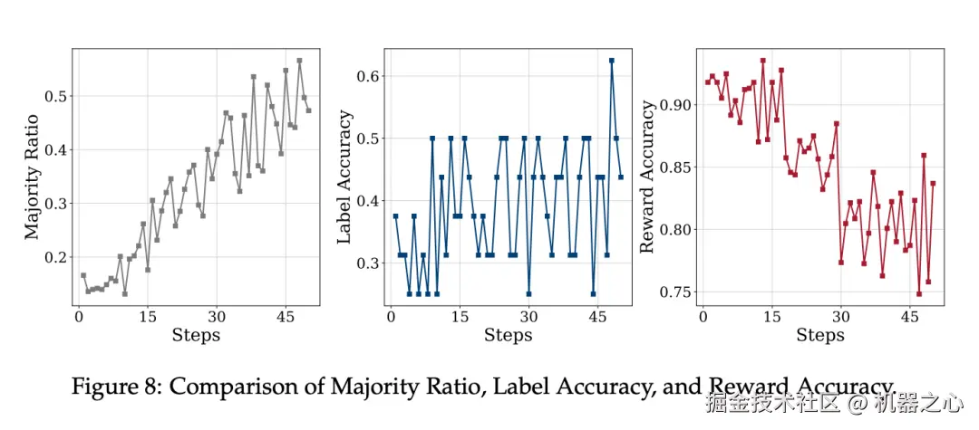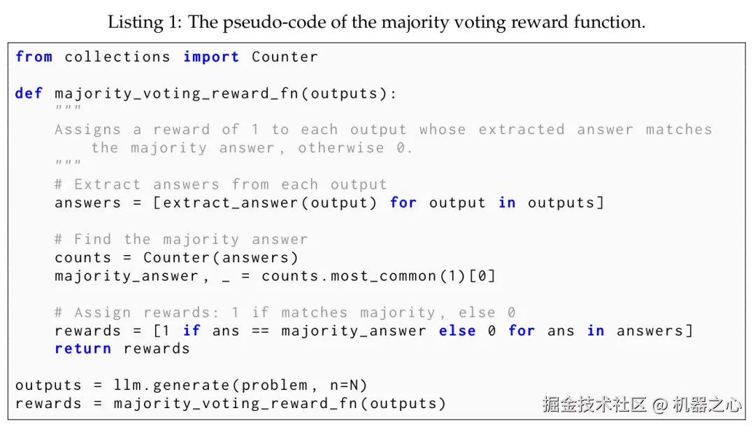 随后,该多数投票结果 y 被用作标签估计,用于计算基于规则的奖励信号: