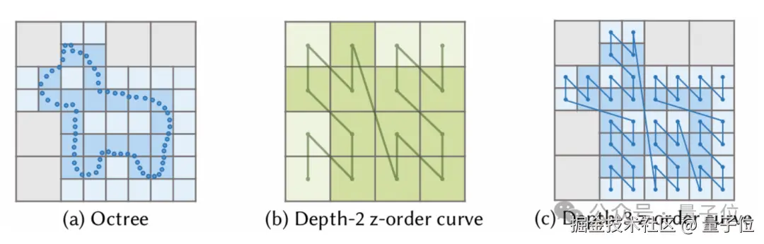 八叉树的递归分裂机制自然地表达了多尺度层次特征,其 Z 型曲线排序策略有效保留空间局部性,为 GPT 的自回归预测提供理想的序列化基础。