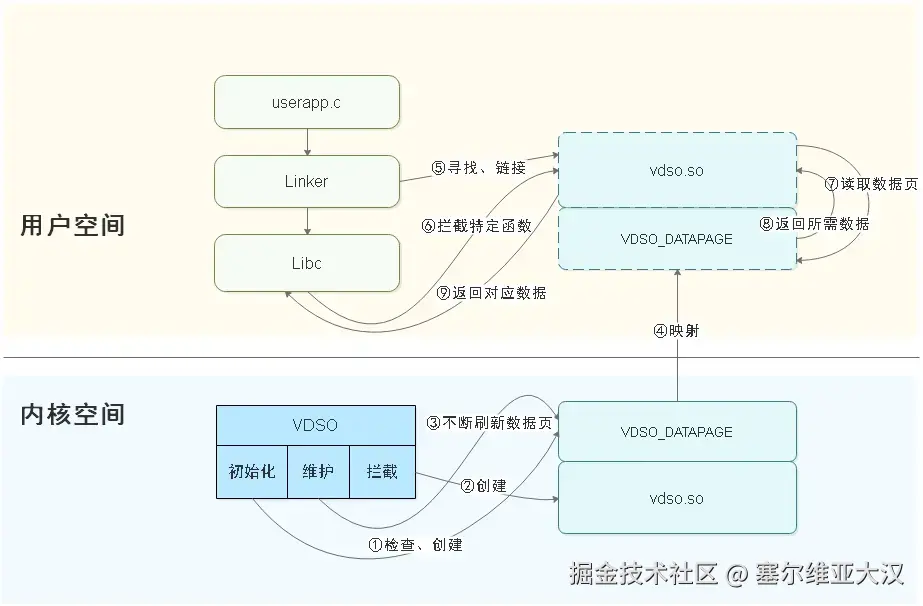 如图1所示,当前VDSO机制有以下几个主要步骤: