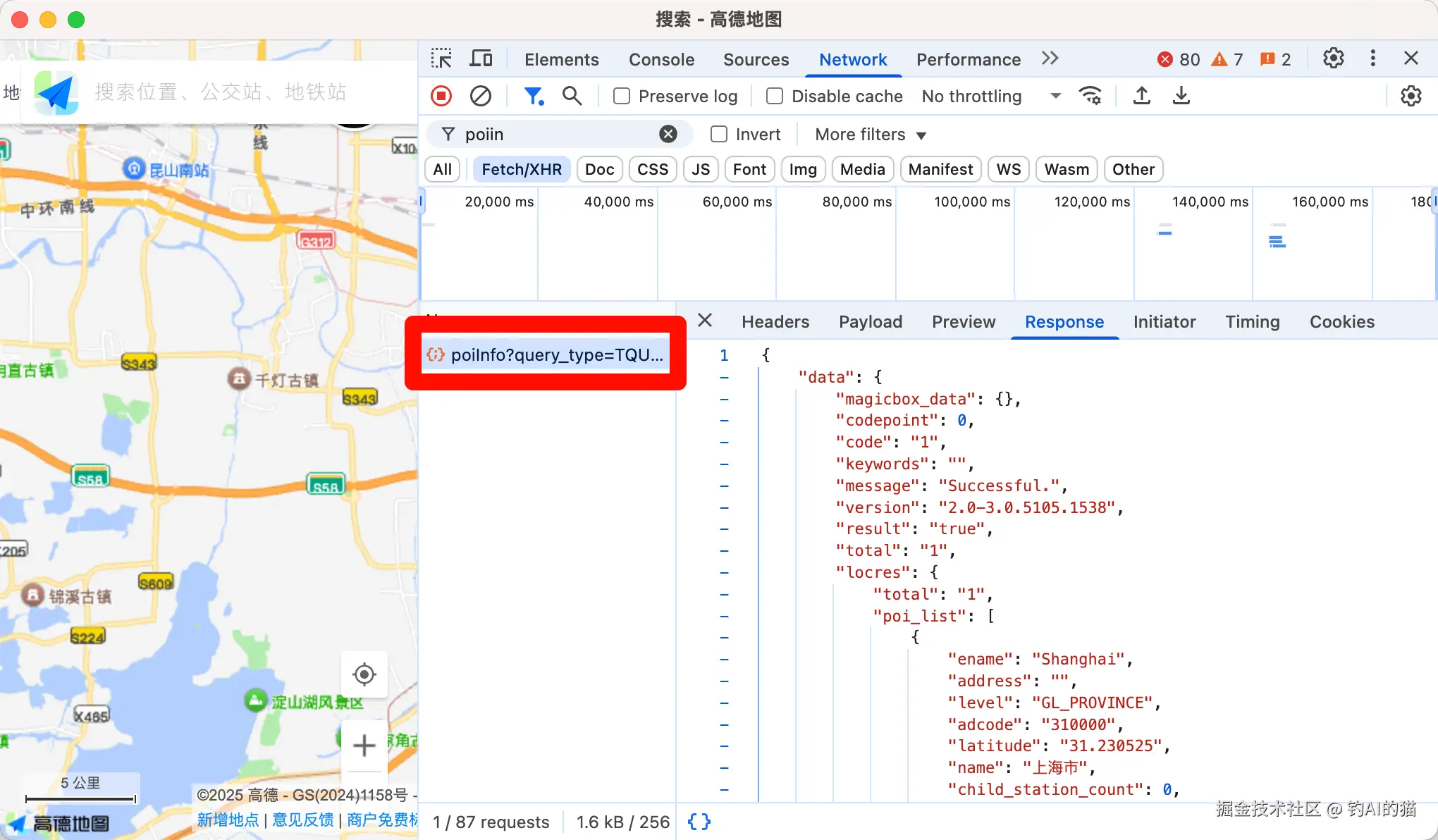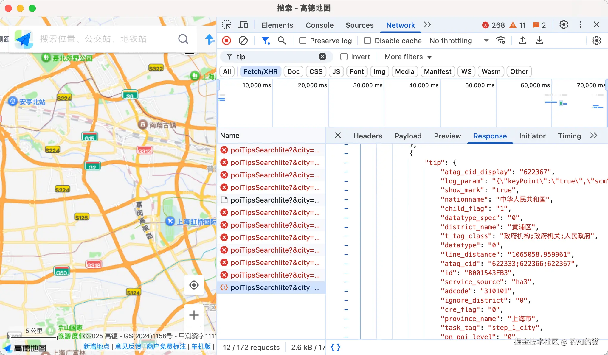 - 通用性:不仅是高德地图,只要是网页端并且数据通过接口返回,都能用这个方法。