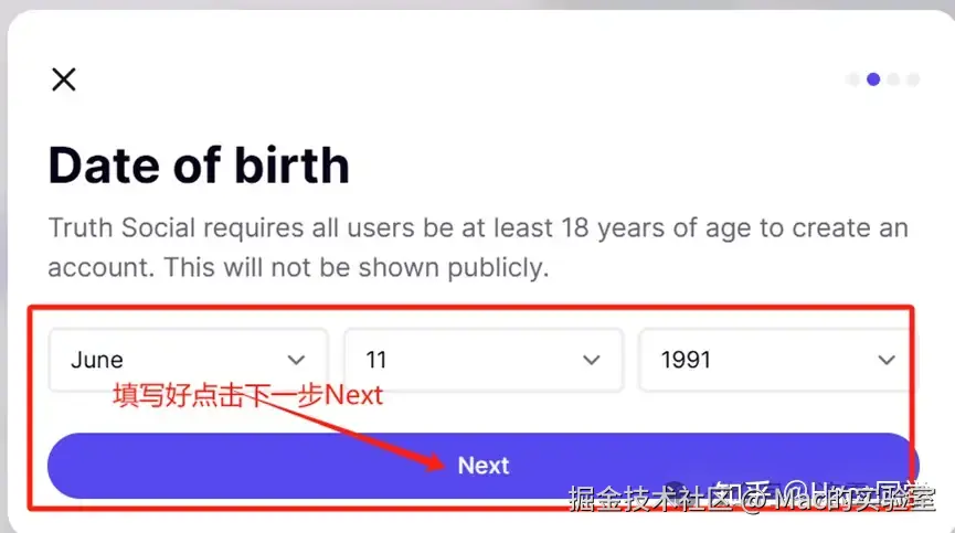 接下来,您需要输入自己的生日信息,并点击“Next”进入下一步。