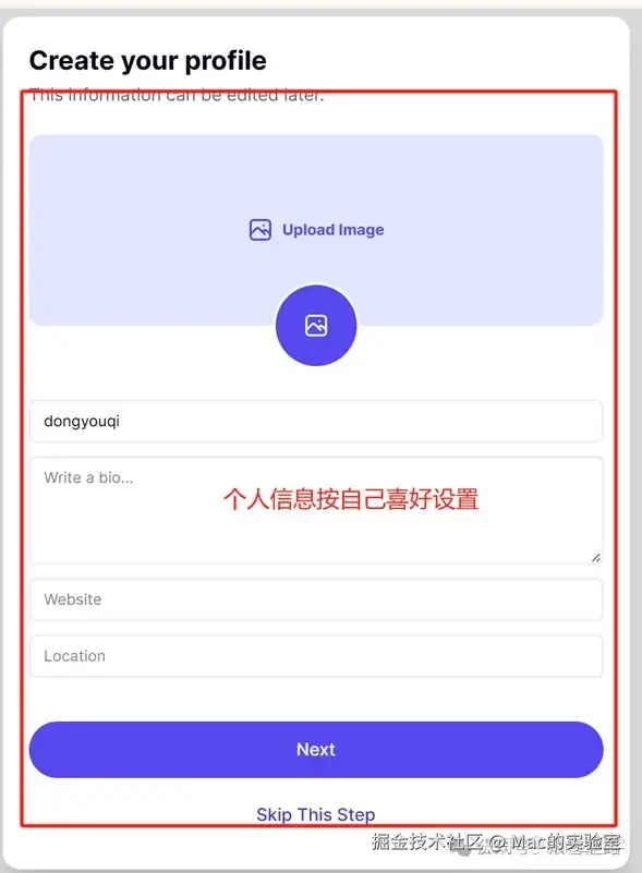 完成上述步骤后,此时,您可以点击“Continue”继续完善自己的头像、签名、简介等信息,也可以选择跳过这一步直接进入首页。