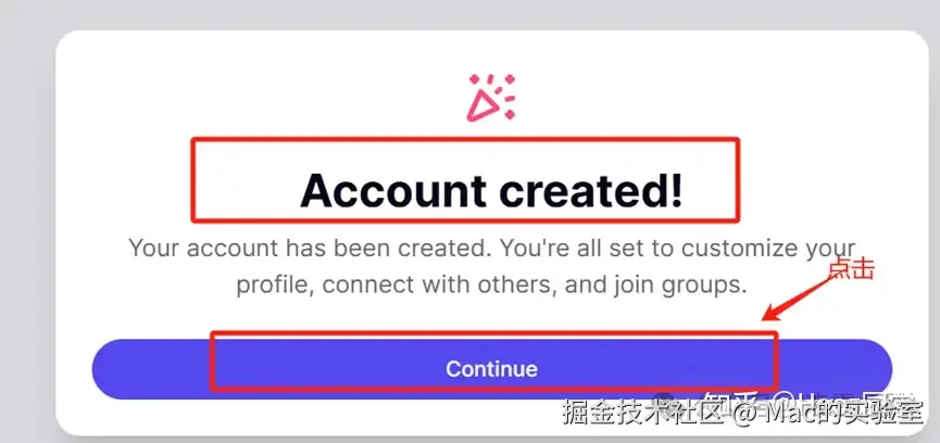 页面会提示【Account created!】表示注册完成。