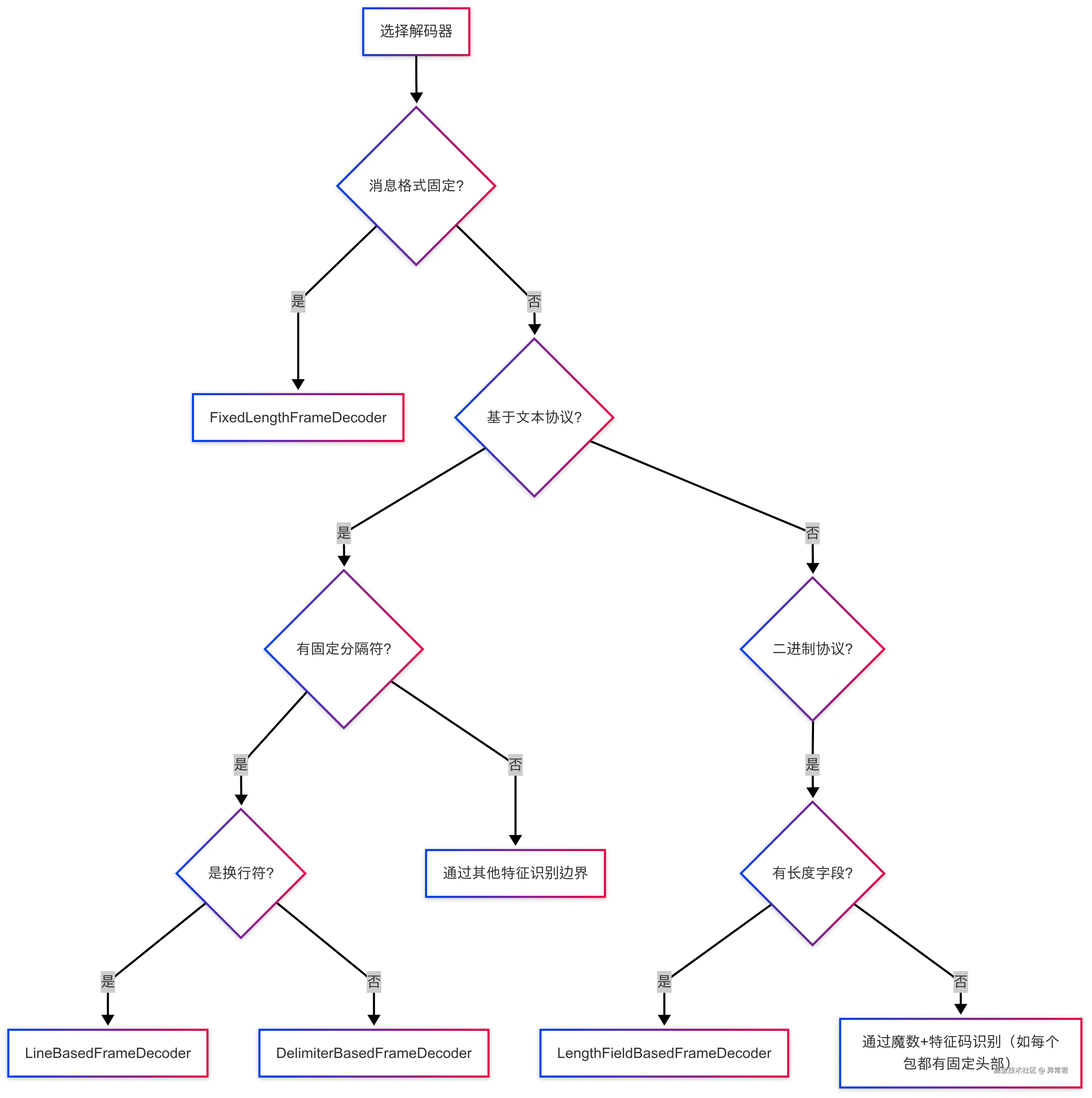- LengthFieldBasedFrameDecoder:通过解析长度字段确定消息边界,灵活性最高