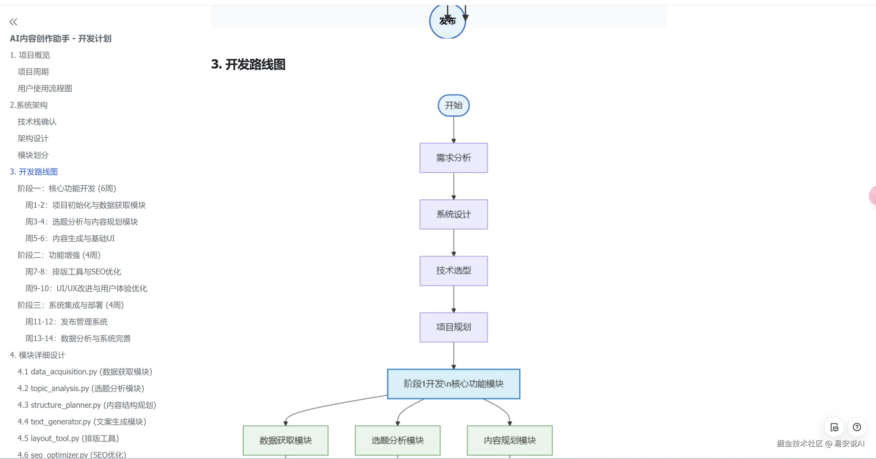 以上是我用这两个MCP Server组合使用,几步就生成好的开发方案,全文总共2600字,还包含各种架构图,ER关系,用户流程图,项目周期图。